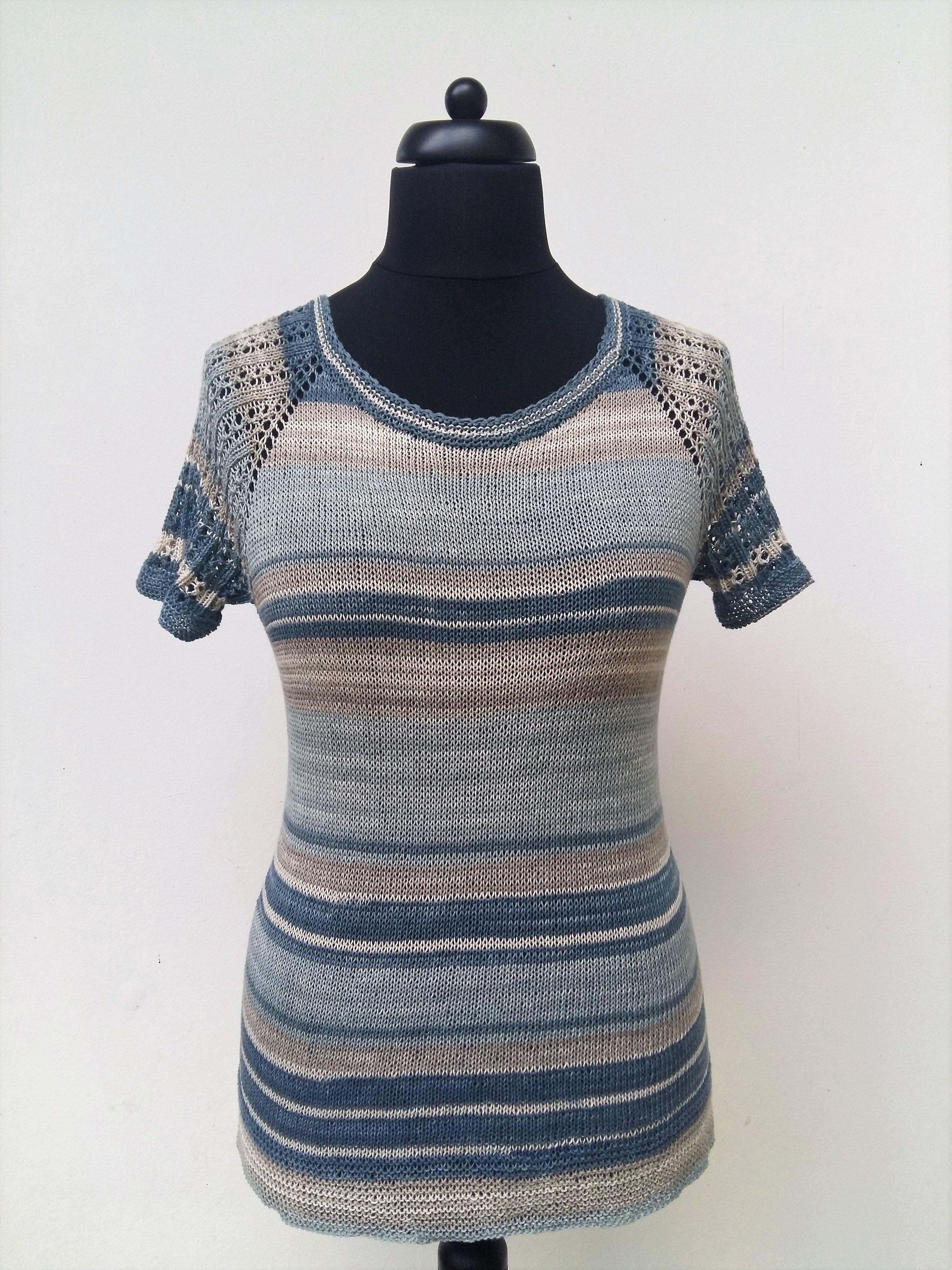Azsurmintás nyári felső, mélyített dekoltázzsal