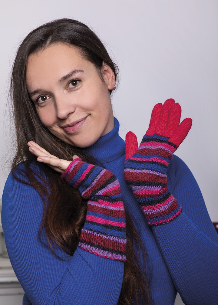 A kesztyű – főleg a zárt, egyben kötött változat – Európában klasszikus terepe a színmintáknak és az „örömkötésnek”.