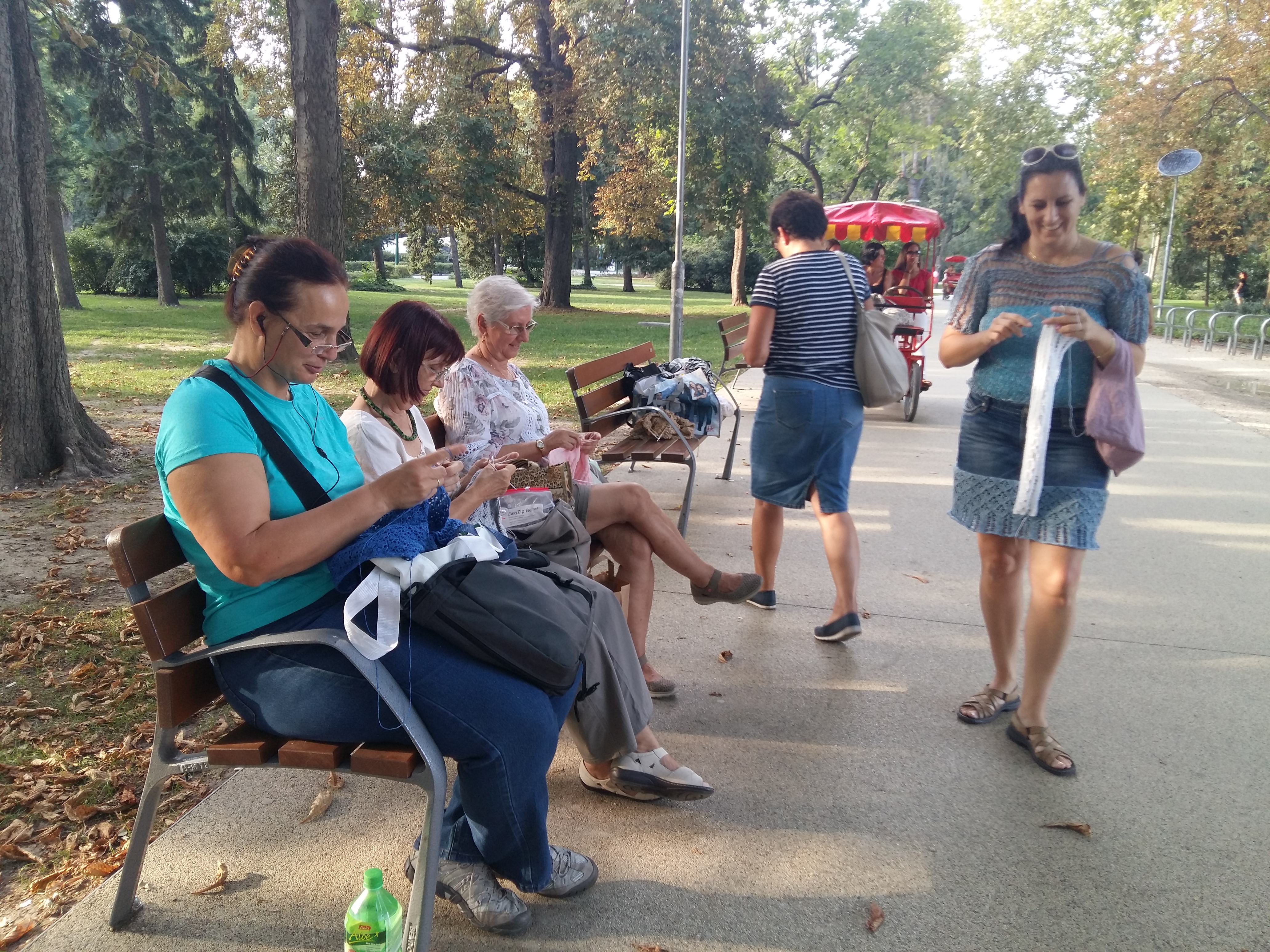 Nyilvános kötés, öröm kötés a Margitszigeti zenélő szökőkútnál.