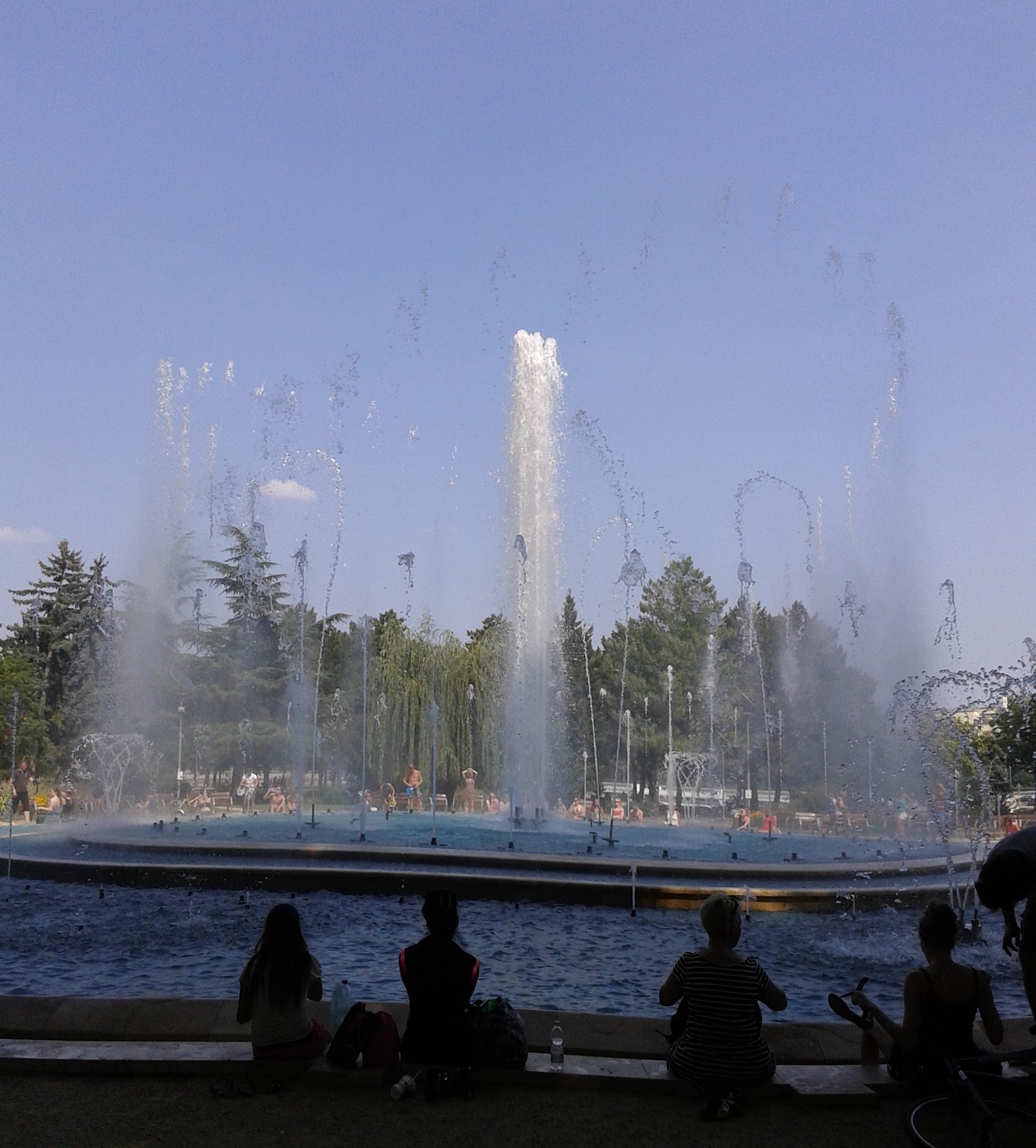Nyilvános kötés, öröm kötés a Margitszigeti zenélő szökőkútnál.