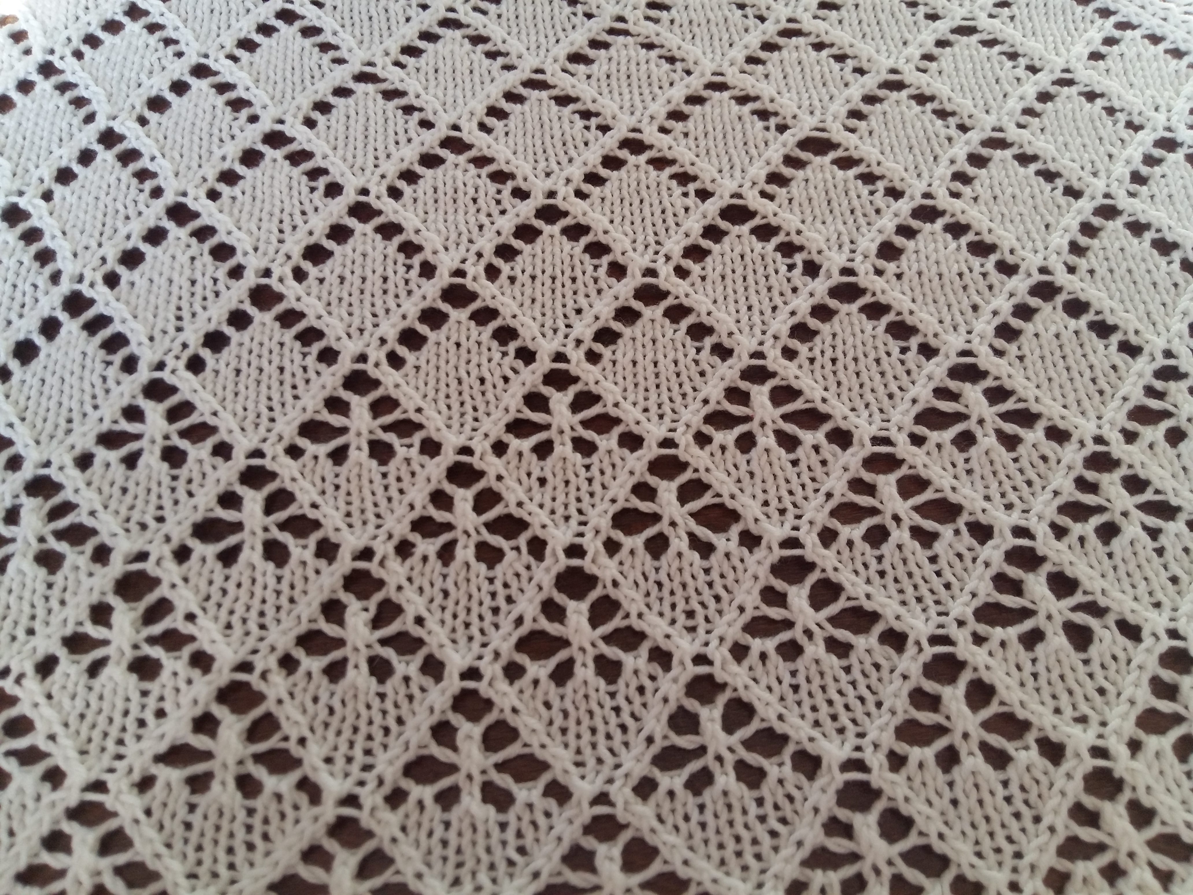Alkalmi babatakaró, ekrü színben, rombuszos csipkemintával