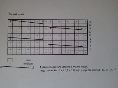 18 csavart mintás oszloppal dolgoztam, oszloponként 9 szem, az az 162 szem. (plusz szélszemek)