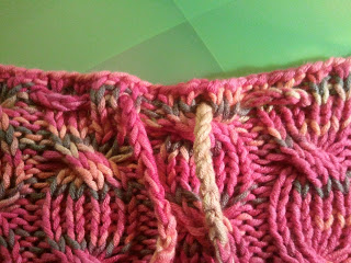 Minden negyedik-ötödik szemet összekötjük. Ezután jöhet a csavart minta.