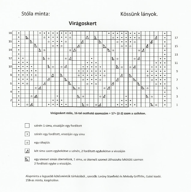 A stóla alapmintáját egy minta gyűjteményből választottam a fonalhoz, a minta neve Virágoskert ami találó is hozzá. A választásnál szempont volt az is, hogy a minta a stóla mindkét oldalán jól mutasson.